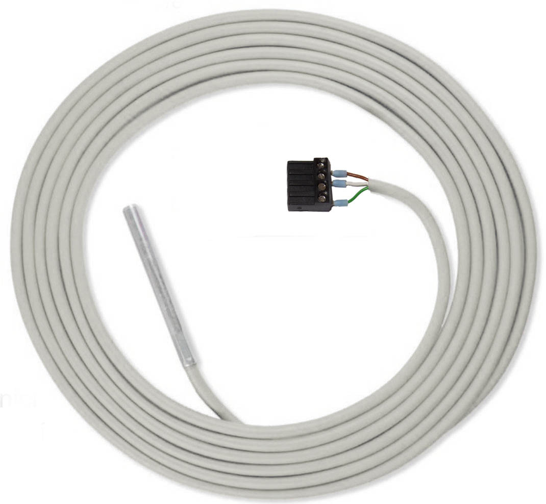 Temperature sensor in a metal rod, within protection degree IP 66, with 3 m long cable connection.