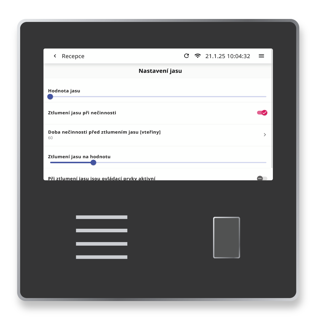 V tomto nastavení je možné nastavit jas obrazovky a také limit, kdy se jas během nečinnosti ztlumí.