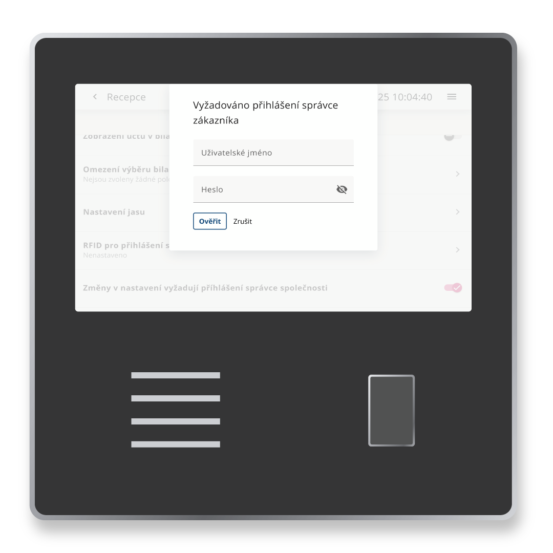 Abyste zabránili úpravám nastavení terminálu, doporučujeme tuto funkci aktivovat přihlášením jako správce.