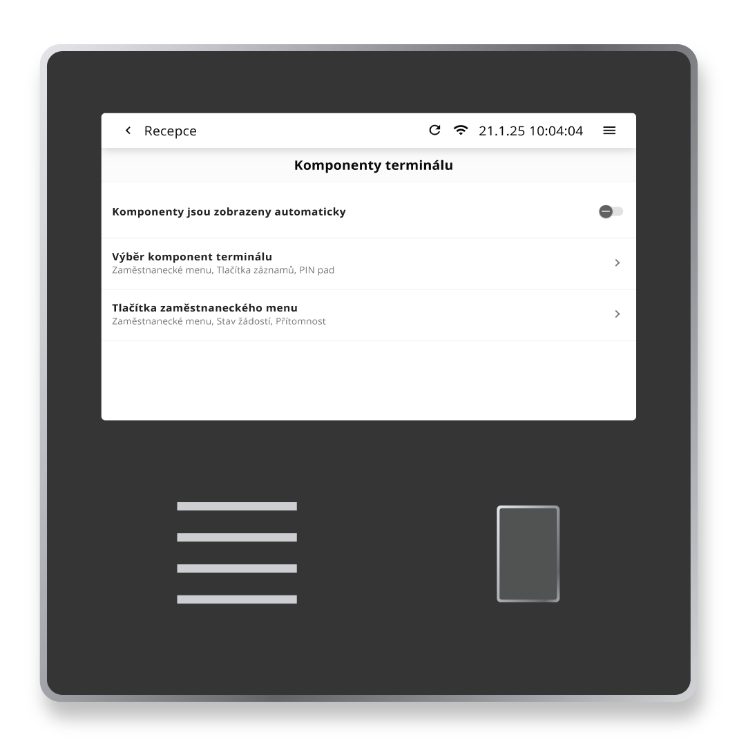 V této části nastavíte vzhled úvodní obrazovky terminálu. Je možné vybrat komponenty, které se mají na úvodní obrazovce zobrazit.