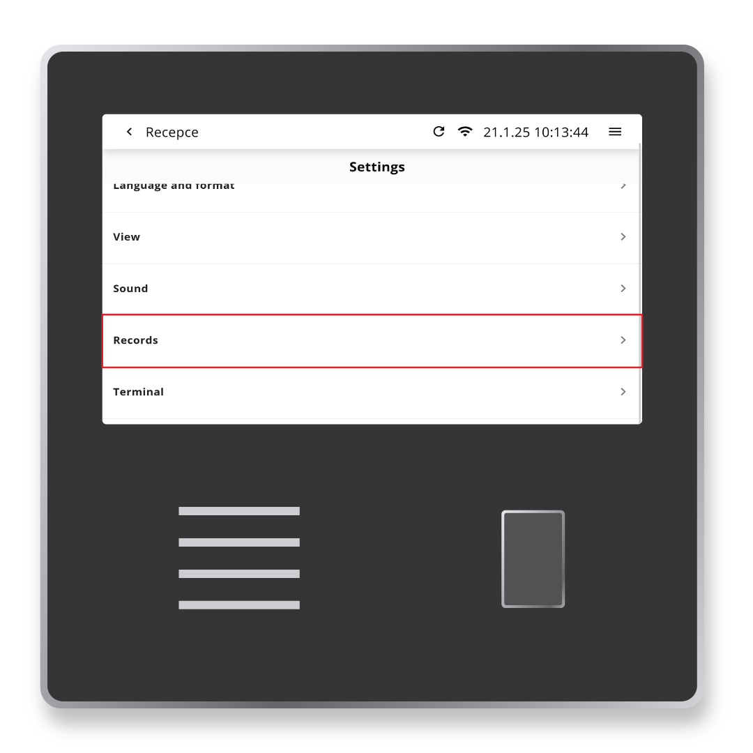 The Records tab is used to set up and select the records you want to record on the terminal. You can have more than one record set up in the system to record your work, but you can only set up the records you select on the terminal.