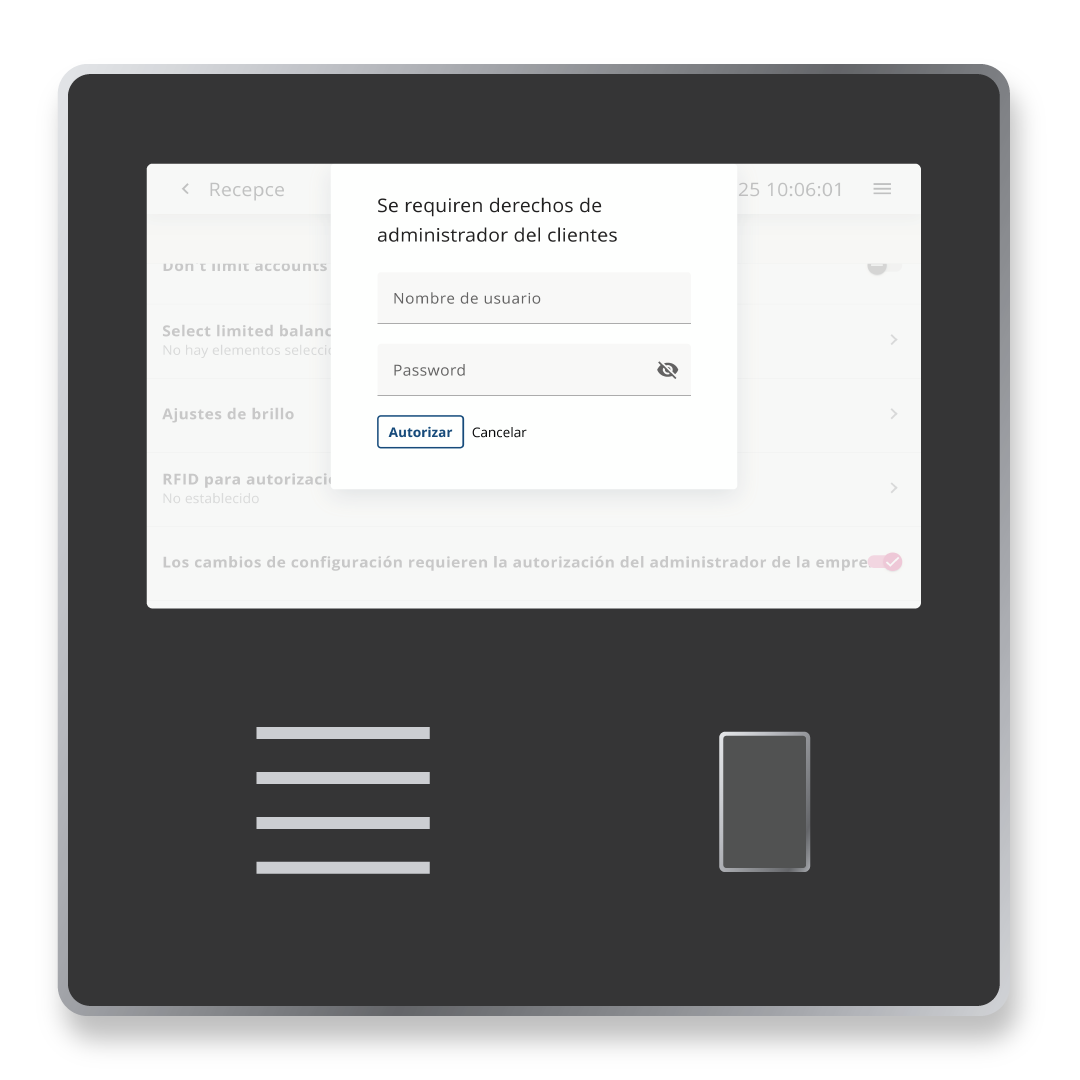 Para evitar la modificación de los ajustes del terminal, se recomienda activar esta función iniciando sesión como administrador.