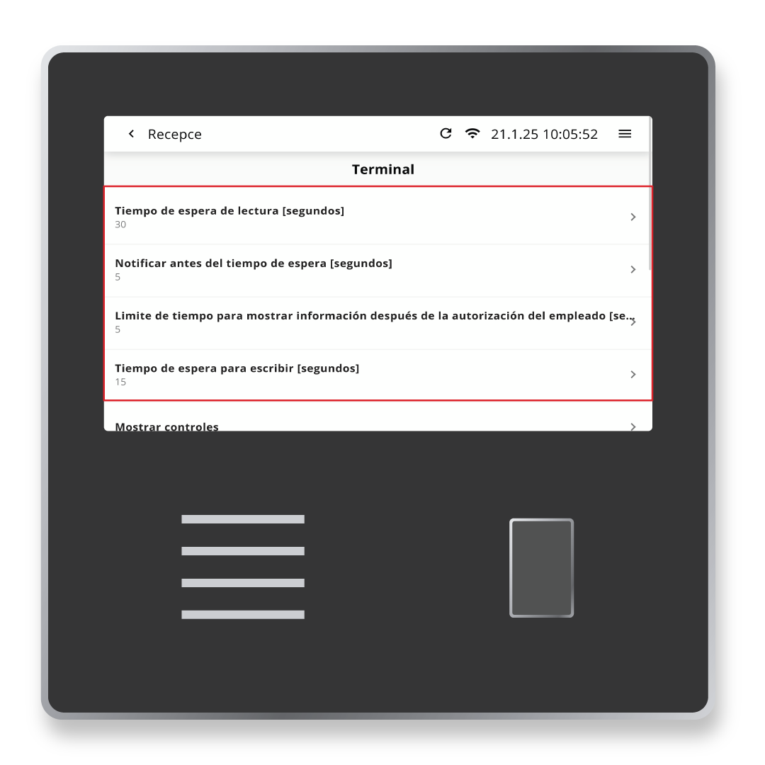 Los valores determinan tras cuántos segodns se cerrará la sesión por inactividad. A continuación, la pantalla cambia a la vista inicial del terminal.
