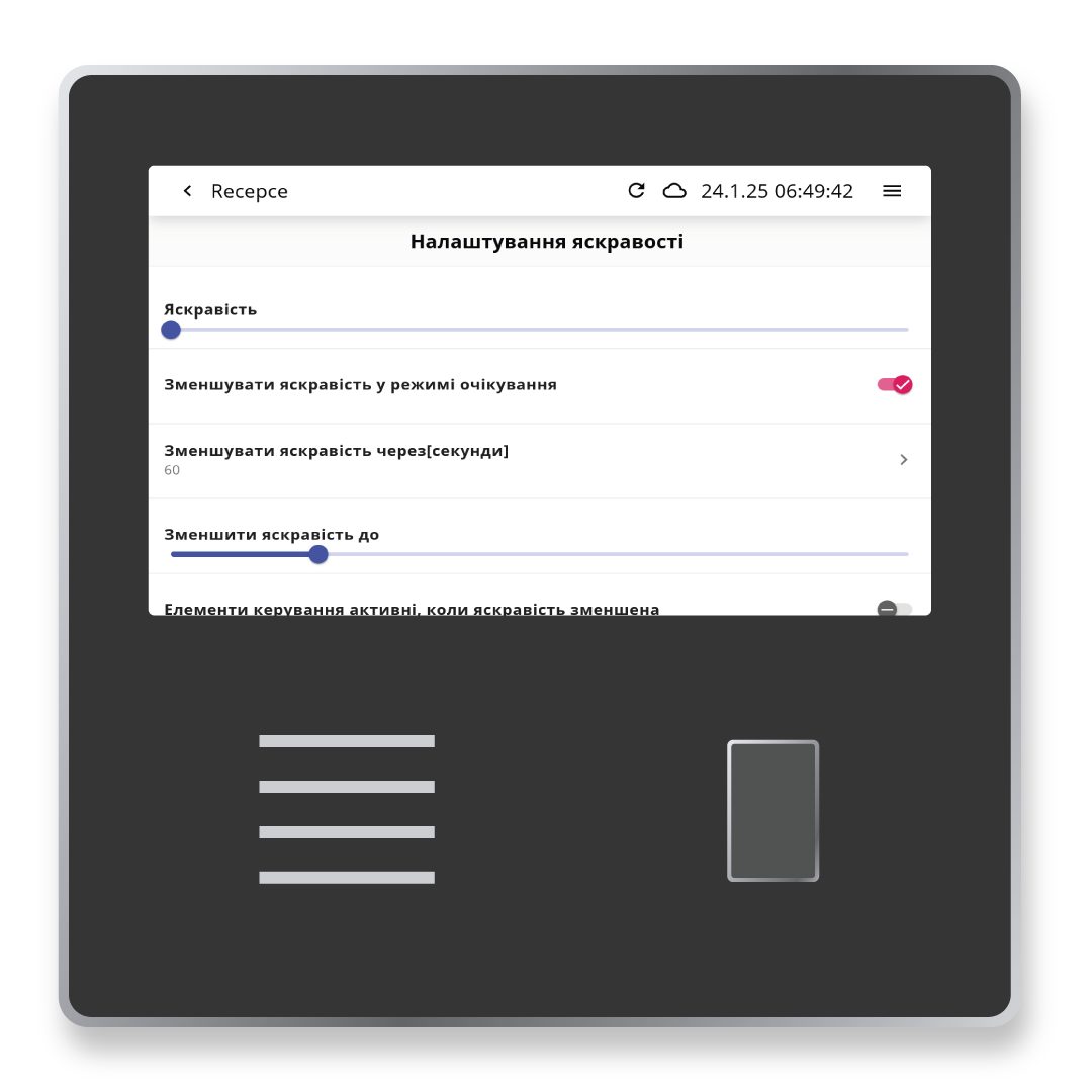 У цьому налаштуванні є можливість встановити яскравість екрану, а також межу, коли яскравість зменшується під час бездіяльності.