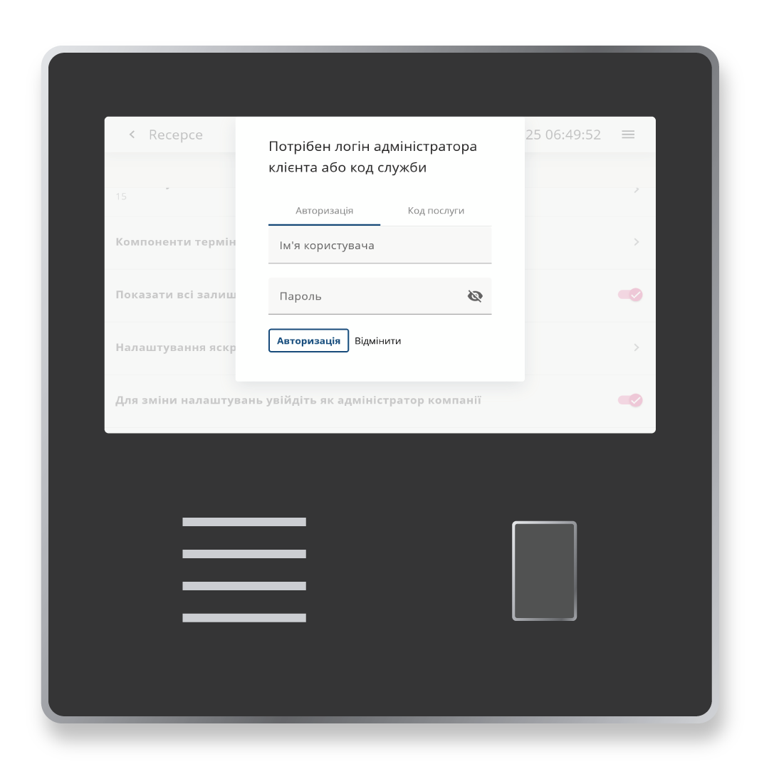 Щоб запобігти зміні налаштувань терміналу, рекомендується активувати цю функцію, увійшовши в систему як адміністратор.